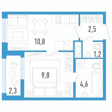 Площадь квартиры 18.20 + балкон 3.60 кв.м. в Шушарах, в развитом и престижном районе СПб