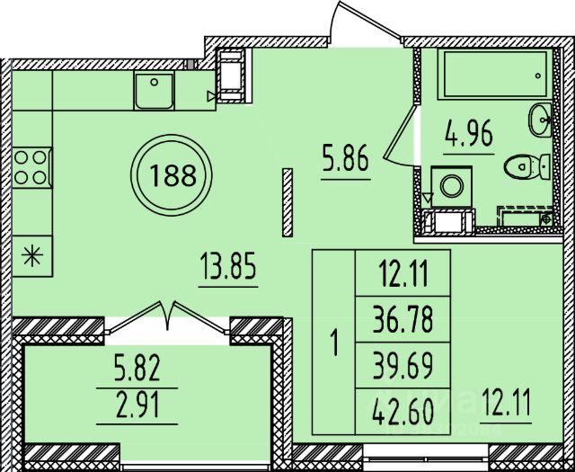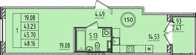 Современная 1-комн. квартира с просторной кухней- гостиной 17,7м и панорамным остеклением лоджии! Потолки от 3,5 до 4,3 м визуально увеличивают пространство и позволяют сделать любой дизайнерский ремонт, даже с вторым уровнем!