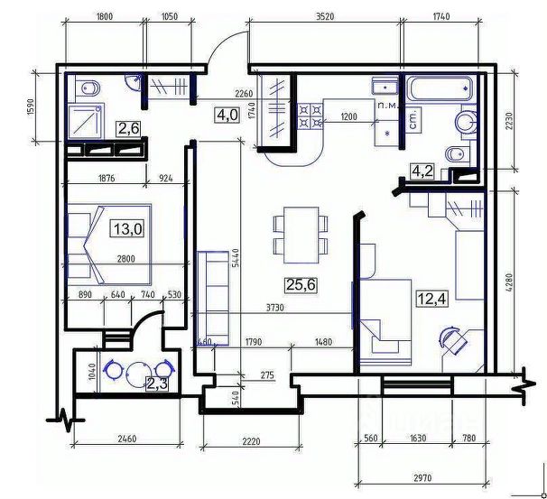 • ✅ Минимальная площадь: 41,4 м²