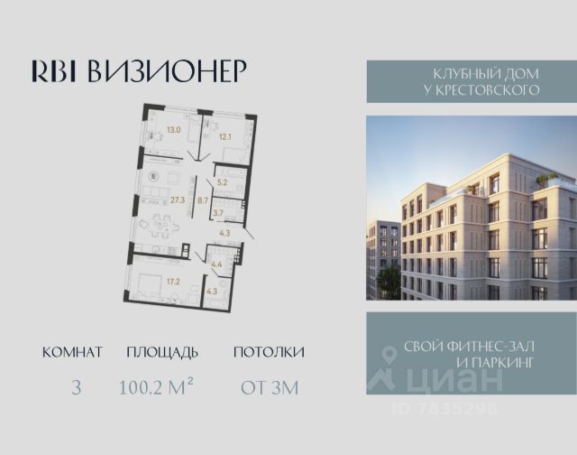 "Визионер" — новый дом элит-класса от RBI в самой престижной локации Петербурга на Петроградской стороне. Рядом — парки Крестовского и Петровского островов, яхт-клубы, бизнес-центры, частные школы и бутики Большого проспекта Петроградской стороны. Камерность поддерживается за счёт деления дома на три разновысотных корпуса и небольшого количества квартир — в доме их всего 225, от 32 до 147 м². Планировки — с большими кухнями-гостиными, мастер-спальнями и функциональными эркерами. На верхних этажах — квартиры с потолками 3,3 м и видовыми террасами: отсюда открывается вдохновляющая панорама исторического окружения Средней Колтовской и Глухой Зелениной улиц. В квартирах — большие алюминиевые окна с накладками из массива дерева. Все лоты продаются без отделки. Элегантное сочетание матового клинкерного кирпича и линеарных объёмов фасадов отсылает к характерным конструктивистским нюансам промышленной архитектуры исторического Петербурга, в особенности здания силовой подстанции фабрики "Красное Знамя", которое располагается рядом. Мягкие линии скруглённых углов гармонируют с плавными изгибами эркеров, а акцентный портал парадного входа приглашает в лобби, сквозь витражные окна которого открывается новая перспектива знакомой локации. Специально для "Визионера" архитектор Евгений Герасимов разработал эксклюзивный паттерн по типу шахматной клетки. Этот орнамент отражает особый визионерский нрав дома и прослеживается не только в перфорированных панелях, которые структурируют пространство лобби, но и в декоративных нишах фасада. Ещё одним украшением парадного вестибюля станет серия интроспективных керамических панно художницы Юлии Клоповой: первое в своей визуальной форме воплощает интуицию, второе — стратегию. Для жителей оборудуют подземный паркинг на 153 машиноместа с усилением сигнала мобильной связи. На первом этаже — собственный фитнес-зал (158 м²) с выделенной зоной тренажёров, секцией для йоги, душевыми и оборудованным массажным кабинетом. В каждой парадной предусмотрены колясочные. Отдельно можно докупить кладовую. В приватном дворе разобьют пейзажный сад со взрослыми деревьями и многолетними кустарниками — всего 4500 растений, которые сохранят привлекательность круглый год. Здесь появятся деревянные скамейки, лёгкие металлические столы и стулья, уличные светильники-торшеры, чтобы во дворе можно было не только подышать свежим воздухом, но и поработать — свободный Wi-Fi на территории. В зоне "зелёной комнаты" установят уличные обогреватели. Детские игровые площадки удалены от мест релаксации и оборудованы развивающими элементами от Richter RUS. В Петербурге игровое оборудование Richter эксклюзивно представлено в домах RBI и в "Новой Голландии". Двор без машин полностью огорожен и охраняется круглосуточно. Вход на территорию — по бесконтактному цифровому ключу. "Визионер". Дом, достойный взглядов.