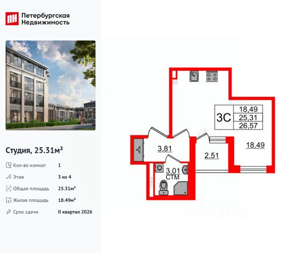 - Третья комната 17.9 м² .