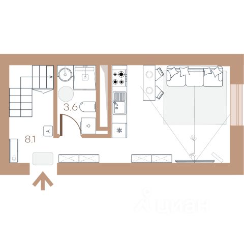 Расположена на 8 этаже.