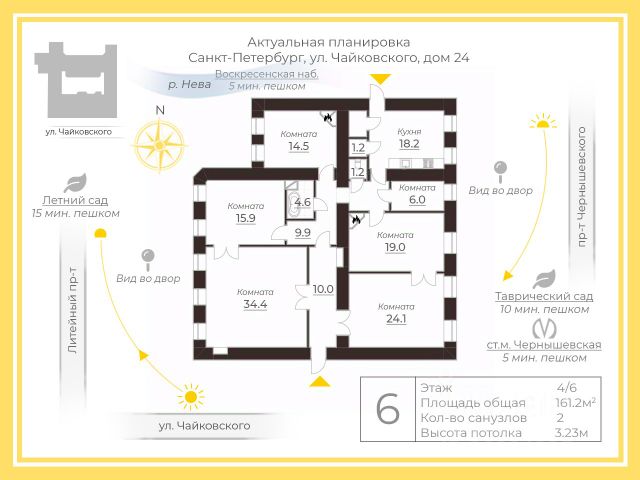 Арт. 127171429 Особняк А.А Фадеева. Доходный дом О.В.Серебряковой. 1900г- архитектор Гиршович Борис Ионович Дом известен как особняк генерала от артиллерии, попечителя Александровского комитета о раненых А. А. Фадеева. Он же - доходный дом О. В. Серебряковой архитектора Р. Б. Бернгардта, 1860 г. Построен на месте, где в 1820-х гг. стоял небольшой деревянный дом статского советника барона Черкасова, окруженный просторным пейзажным садом, затем принадлежавший жене штаб-ротмистра А. П. Голохвастовой. Позднее, в 1900 году особняк купила жена полковника Кавалергардского полка О. В. Серебрякова, и архитектор Гиршович Борис Ионович произвел перестройку с включением уже существовавшего дома. Улица Петра Великого, ныне носящая имя гениального русского композитора Петра Ильича Чайковского, хранит в себе множество историй, запечатленных в камне ее величественных зданий. Одним из таких храмов времени является дом номер 24. Его фасады несут на себе следы столетий, продолжают рассказывать о былом великолепии. Откройте для себя воплощение классического петербургского стиля в превосходной квартире, расположенной по престижному адресу улица Чайковского, дом 24. Здесь история оживает в каждой детали, создавая неповторимую атмосферу роскоши и утонченности. Два входа в квартиру, просторные комнаты с высокими потолками, изысканная лепнина, старинные печи и большие окна, наполняющие пространство светом, все это гармонично сочетается с современными удобствами. Идеальное расположение в одном из самых культурно насыщенных районов города позволит вам наслаждаться пешей доступностью к лучшим музеям, театрам и паркам. Это не просто квартира, это возможность жить в произведении искусства. Квартира была приватизирована весной 1996, и с тех пор принадлежала одной семье. Интеллигентная ленинградская семья инженеров-строителей с огромным опытом проектирования в родной стране и за рубежом. Они как никто знали, как правильно выбрать себе дом. Коренные петербуржцы, ценившие особую атмосферу центра города. Те, для кого история это факты из жизни своего рода, а не просто параграфы из учебника. Они выбрали именно эту квартиру. Квартира находится во второй части дома. Вход через арку. Поэтому там тихо. И шум центра не мешает спокойной вдумчивой жизни. Вы "ныряете" в подворотню из городской суеты, и оказываетесь в оазисе покоя и размеренной петербургской жизни. Ворота арки открываются с пульта. Всегда есть места для парковки и в первом, и во втором дворе. Можно въезжать и с другой стороны, с улицы Захарьевская. Во втором дворе есть сквер, детская площадка. Данная квартира характеризуется двухсторонней планировкой и двумя входами, что предоставляет возможность ее последующего разделения на две отдельные квартиры. Высота потолков составляет 3,23 метра. Пассажирский лифт! Данный объект может представлять интерес для инвесторов в сфере недвижимости, а также для лиц, предпочитающих проживание в престижной локации Санкт-Петербурга. Дом расположен в непосредственной близости от стан