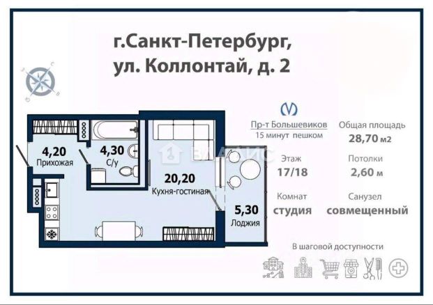 • ✓ В базе Циан продается 5 квартир на улице Коллонтай дом 2 в Санкт-Петербурге.