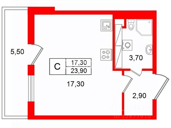 Функциональная большой балкон 5 кв.м., просторная прихожая и санузел.