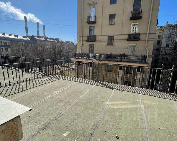 Дом 1913 года — кирпичный, с несущими стенами почти метровой толщины и деревянными перекрытиями по металлическим швеллерам. Квартира занимает весь пятый (последний) этаж — выше только чердак. Потолки 3,2 м, анфиладная планировка сохранена: дверные проёмы между комнатами зашиты гипсокартоном, но при желании их легко вернуть.