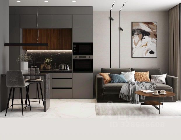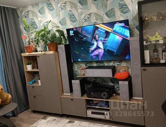 — Уютная гостиная с диваном, экраном для киновечеров всей семьёй и собственной теплой лоджией, которая при желании может стать отдельной просторной комнатой.