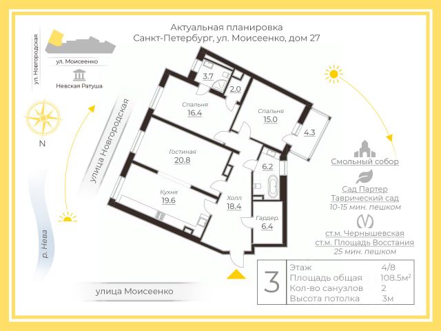 Прямая продажа. Один взрослый собственник. Квартира на улице Смольного в Санкт-Петербурге.