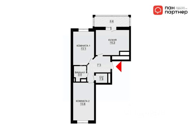 Терраса 14 кв. метров, площадь террасы не входит в общий метраж.