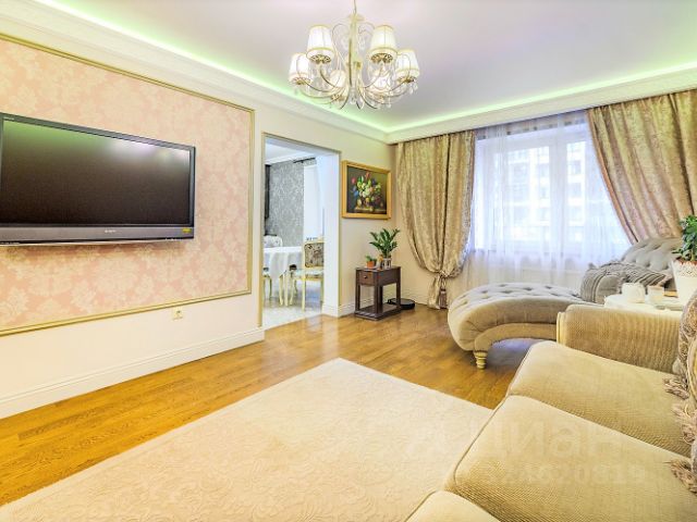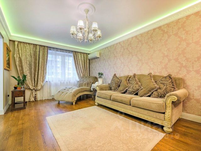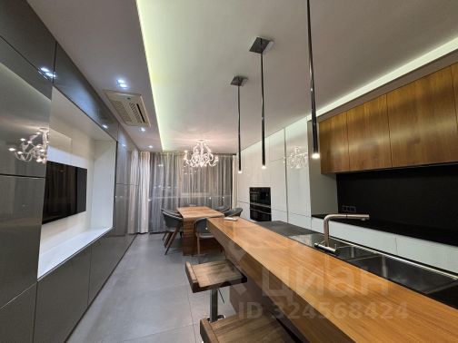Фактическая площадь квартиры с учетом эксплуатируемой террасы составляет 178,8 м2. В квартире с индивидуальной планировкой выполнен дизайнерский ремонт из качественных материалов, включая отделку из древесины ценных пород, оникса. Состоит квартира из трех спален (каждая имеет свою гардеробную), кабинета (с гардеробной), гостиной-столовой, кухни, 2х санузлов (1 при спальне), прихожей и холла. Большая круглая гостиная подходит для тихих семейных вечеров, но сможет принять и многочисленную компанию родных и друзей.
