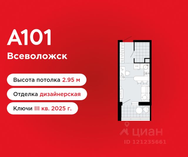 Студия площадью 20.60 в ЖК "А101 Всеволожск" c лоджией на 8 этаже. Квартира white box. Вид из окна во двор. В квартире 1 санузел. Высота потолков 2.8 м. Особенность планировки - гардеробная. ОТДЕЛКА Квартира с предчистовой отделкой предполагает: качественную стяжку на полах под финишное покрытие, потолок с обеспыливающей грунтовкой белого цвета, ровные стены с покрытием штукатурка. Выполнены все работы по проведению электрики. На все отделочные работы от застройщика предоставляется гарантия. Если вы хотите дозаказать дизайнерскую отделку, обращайтесь к нашими специалистами. ОСОБЕННОСТИ ПЛАНИРОВКИ Места для хранения находятся в прихожей и жилой зоне квартиры, дополнительно можно получить доступ к кладовым на подземном уровне (площадь - 2-8 кв. м). ПАРАДНАЯ В каждой парадной предусмотрены места для хранения велосипедов и колясок, гостевой санузел, лапамойка (место для мытья домашних животных или колес велосипедов) и удобная зона ожидания для гостей. ДВОРЫ И ОКРУЖЕНИЕ Просторные дворы свободны от машин и закрыты от посторонних. Большую часть комплекса займут благоустроенные зелёные зоны, теневые сады и городские общественные пространства с развитой тротуарной сетью и велодорожками. Каждый дом оборудован системами видеонаблюдения и контроля доступа. Не хватает средств на покупку кладового помещения? Оформите ипотеку на квартиру и добавьте к ней часть стоимости кладовой. ЗАСТРОЙЩИК ГК "А101" - крупный инвестиционно-строительный холдинг, занимает 6-е место по объему строительства в России (по данным "Единого ресурса застройщиков" на 2023 год). НКР присвоило ГК "А101" кредитный рейтинг A+.ru, подтверждая его надежность и финансовую устойчивость для завершения строительства ЖК. Продам квартиру-студию до 18 млн. рублей в Всеволожске.