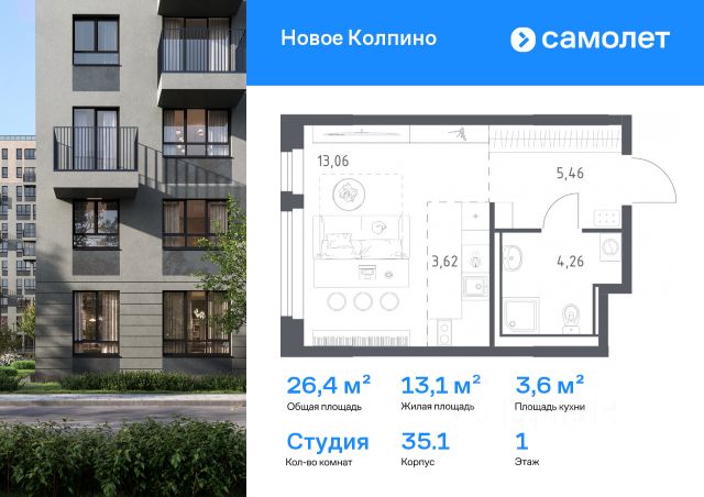 Строим кварталы для жизни с заботой о будущем. Предлагается квартира студия комфорт-класса 21,83 кв.м в корпусе 33 на 4 этаже, в ЖК "Новое Колпино" Квартира без отделки. Доступность опции "отделка" и возможность комплектации мебелью и декором уточняйте у застройщика. Приобрести квартиру возможно по специальным акциям от застройщика, с текущими условиями акций можно ознакомиться в блоке "Акций". Цена динамическая и может отличаться, уточняйте актуальность у застройщика. Квартал "Новое Колпино" — современный квартал в тихом и зеленом районе Санкт-Петербурга. Здесь можно подолгу любоваться пышными кронами деревьев, подставляя лицо теплым лучам солнца. А еще в любой момент можно сесть в машину и уже через час оказаться в сердце Северной столицы. Будет легко планировать поездки: до центра Петербурга, или площади Восстания, — 25 минут на поезде. С территории квартала удобно выезжать на крупные магистрали: путь до Южного шоссе займет 15 минут на авто, а до Петрозаводского шоссе — всего 6 минут. В 20 минутах на авто находится метро "Рыбацкое", а в 7 минутах — ж/д станция Колпино. Проводите выходные на природе в Колпинском парке, который находится недалеко от квартала, на берегу реки Ижоры. Летом здесь можно вместе с детьми веселиться на аттракционах, кататься на лодке, играть в бадминтон или волейбол. А еще можно захватить орехов и покормить белок. Всего 7 минут на авто или автобусе — и вы в центре города Колпино. Взрослых впечатлит русская архитектура старинных церквей, а детям понравится забавный памятник героям мультфильма "Трое из Простоквашино". В "Новом Колпино" будут работать 4 детских сада, 3 из них уже готовы встречать малышей. Ребята постарше могут ходить на занятия в школу с собственным бассейном, в проекте уже работает новая современная школа с бассейном Корпуса высотой 11 этажей с французскими и панорамными балконами отделаны штукатуркой и облицовочным кирпичом. Вдохновение для палитры нам подарили оттенки рассветного неба: терракотовый, персиковый, песочный. Во дворе найдется интересное занятие для всех жителей квартала. Взрослые смогут устраивать тренировки на свежем воздухе в спортивных зонах, дети будут целый день веселиться на игровых площадках. А еще мы позаботились о вашей безопасности и закрыли дворы от машин. Возвращайтесь домой с чемоданом из путешествия или коляской из парка. На пути в подъезд вы не встретите ступенек. Оставить транспорт можно будет в специальном помещении на первом этаже. По желанию вы сможете получить ключи от квартиры с готовой отделкой. Мы положим ламинат, поклеим обои, установим мебель и сантехнику. Доступен вариант с готовой кухней — бежевые тона отделки станут фоном для интерьера мечты. Чтобы сразу отпраздновать новоселье, закажите у нас декор и мебельные сеты. А если хочется воплотить собственные идеи в интерьере, присмотритесь к опции — без отделки. Продам квартиру-студию до 18 млн. рублей в Колпино.