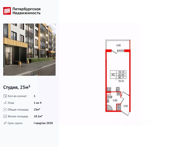 Купить квартиру-студию 25 м2 в Санкт-Петербурге