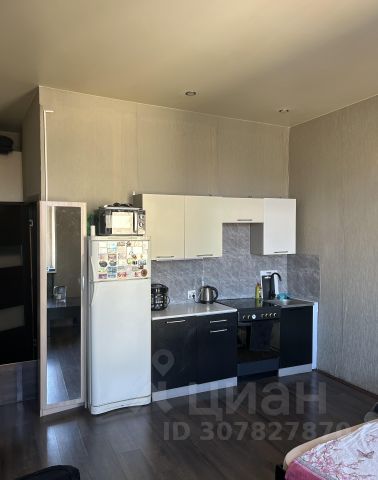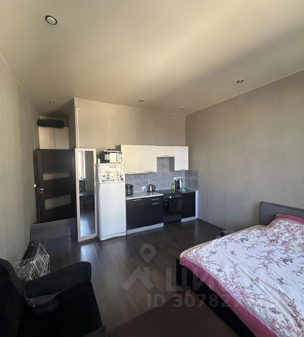 Функциональная планировка для студии: есть выделенная зона спальни, а зона кухни-гостиной позволяет с комфортом разместить диван, а в прихожей установить вместительный шкаф, совмещенный санузел, в котором установлена стиральная машина, душевая кабина и дополнительно бойлер.