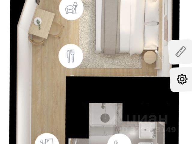 Эргономичная планировка правильной формы, при входе есть место под вместительный шкаф, один из санузлов можно использовать как полноценную гардеробную комнату, второй санузел вмещает полноразмерную ванную, а также остается место для инсталляции, раковины и стиральной машины.