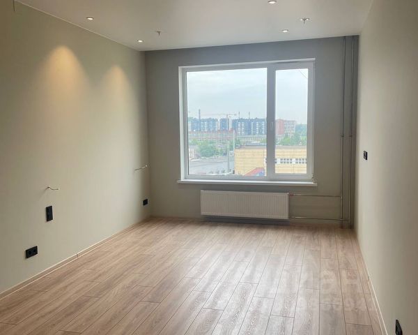 Жилая комната большая, вместит в себя не только место для отдыха, но и места для хранения, рабочее место, и все, на что только хватит Вашей фантазии. Здесь также есть выход на лоджию.