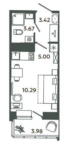 Продается квартира-студия на 6-м этаже в строящемся проекте комфорт-класса GloraX Новоселье. Общая площадь лота составляет 20,83 кв. м, из которых 10,24 кв. м отведено под жилую и 4,40 кв. м под кухонную зону. Номер квартиры - 80