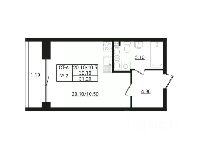 Продаётся студия в сданном доме (Уланская, 1), срок сдачи: II-кв. 2024, общей площадью 20.8 кв.м., на 6 этаже. Расположение, транспортная доступность