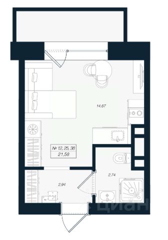 Продаётся студия в строящемся доме (Феникс), срок сдачи: I-кв. 2027, общей площадью 21.96 кв.м., на 2 этаже.