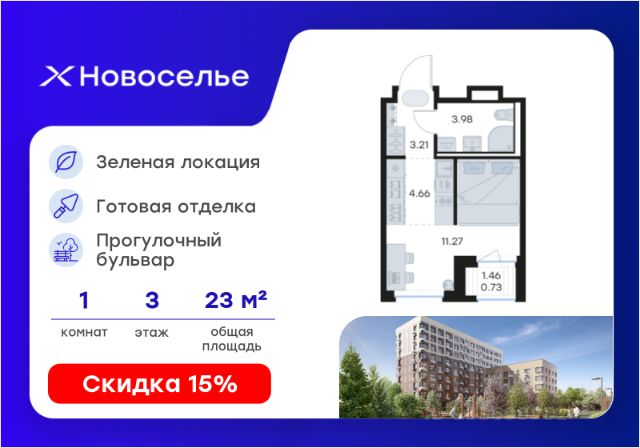 Продаётся квартира-студия площадью 28,62 кв.м на 10 этаже 12 этажного дома (Корпус 4.2, Секция 1) проекта ПИК Таллинский парк. Светлый просторный подъезд на уровне земли, функциональная планировка, большие окна, без отделки. "Таллинский парк" - проект в Ленинградской области, в районе Новоселье. До станции метро "Проспект Ветеранов" - 15 минут на автомобиле, а до КАД можно доехать всего за 4 минуты. "Таллинский парк" включает 16 жилых домов, детский сад и школу. В проекте появится центральный сквер с обильным озеленением, а через весь квартал протянутся широкие пешеходные бульвары. В зелёных дворах-парках будут оборудованы современные детские и спортивные площадки, обустроены места для отдыха. На первых этажах разместятся магазины, кафе и другие сервисы. Проектом предусмотрены персональные кладовые помещения - это доступный, экономичный и удобный способ хранения сезонных и крупногабаритных вещей. Освободите свою квартиру для полноценной жизни. Район Новоселье активно развивается в городском формате: здесь уже работают детские сады, школа и магазины. Для любителей зимних видов спорта открыта круглосуточная ледовая арена. За покупками и развлечениями также можно быстро доехать: 10 минут - и вы в Аутлете Таллинское, гипермаркетах Лента, Леруа Мерлен и Окей. В 10 минутах на автомобиле находится Финский залив, на берегу которого расположились объекты культурного наследия. Рядом - Константиновский парк с отреставрированным дворцом, а чуть дальше расположена усадьба Знаменка. В великолепном Петергофе вы будете уже через 20 минут. Артикул 1026468 (Застройщик ООО "СПЕЦИАЛИЗИРОВАННЫЙ ЗА СТРОЙЩИК "СТРОЙ-ЭКСПЕРТ ") [cn_sbp_1817860]