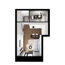 1-комн. квартира-студия в ЖК "Галерная гавань" на 3 этаже. Квартира без отделки, новый собственник может сделать ремонт по своему дизайн-проекту. Общая площадь: 29.45 кв.м., площадь гостиной 19.09 кв.м., из которых 5 кв.м. выделено под кухонную зону. Все окна выходят на одну сторону. В квартире один совмещенный санузел. Высота потолков 3.02 м.