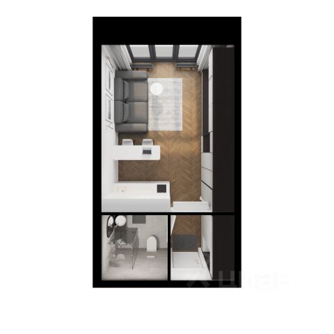 Однокомнатная квартира-студия в ЖК "Галерная гавань" на 2 этаже. Квартира без отделки, новый владелец может сделать ремонт по своему проекту. Общая площадь: 30.81 кв.м., площадь гостиной 22.38 кв.м., из которых 5 кв.м. выделено под кухонную зону. Все окна выходят на одну сторону. В квартире один совмещенный санузел. Высота потолков 3.02 м.