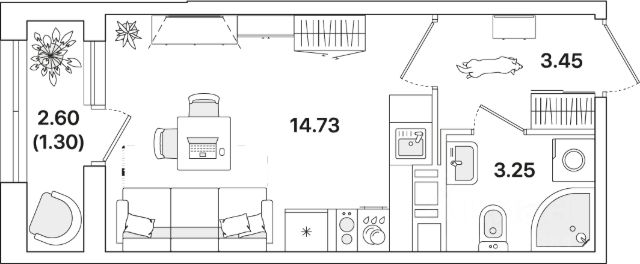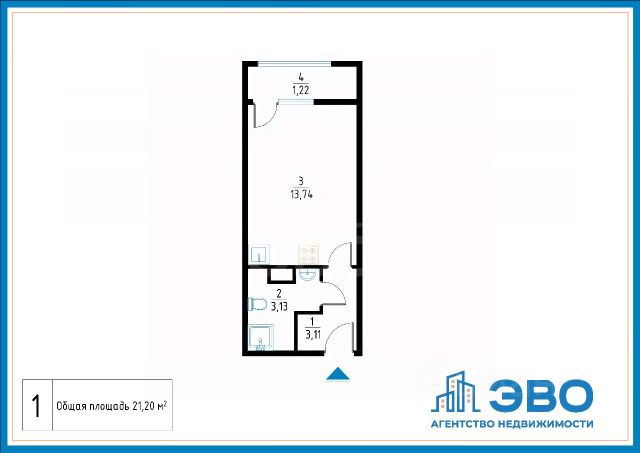 Общая площадь квартиры 21,2 кв.м., без отделки, сдача 3 квартал 2025г.