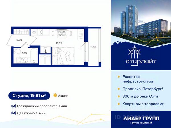 Продаётся Студия в ЖК Академик от застройщика Холдинг "РСТИ" (Росстройинвест).