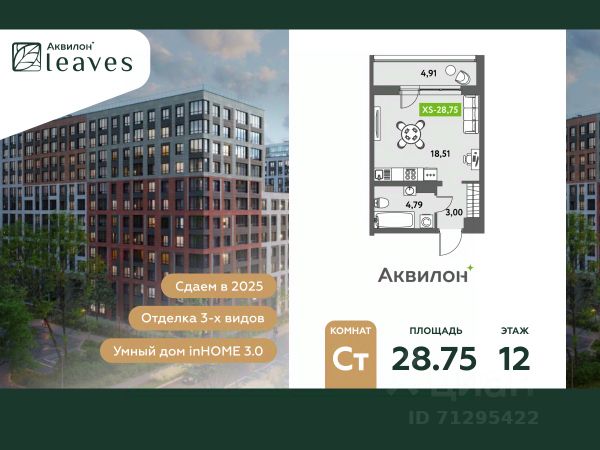 Купи квартиру в ЖК "Аквилон Leaves"! Отделка В квартире выполнена предчистовая отделка WhiteBox +Возможен дозаказ отделки в любом из 3 цветов: SAND, TERRA, GRAPHITE Отделка входит в стоимость квартиры в ДДУ ЖК "Аквилон Leaves" Жилой комплекс класса бизнес-лайт "Аквилон Leaves" воплощает идеальную синергию природы, технологий и дизайна. В одном из самых престижных районов Санкт-Петербурга мы создаем функциональную жилую среду, которая позволит максимально быстро и удобно решать бытовые вопросы, сохраняя ценное время для семьи и любимых занятий. -Малошумные лифты -Сквозные парадные -Светопрозрачные входные группы -Увеличенная высота первого этажа -Безбарьерная среда -Подземный паркинг Стандарты Группы Аквилон для вашей комфортной жизни Thermo-S экономия на коммунальных платежах за счет дополнительно утепленных стен, кровли и цоколя. Энергоэффективные окна с селективным покрытием и аргоновым заполнением Soundstop - дополнительная шумоизоляция внутренних перегородок и межэтажных перекрытий, шумозащитные окна, малошумные лифты Light-in - в квартирах устанавливаются широкоформатные окна, увеличены на 30%. Высота подоконников на уровне 60 см от пола. Vent-in - в каждой комнате есть клапаны индивидуальной вентиляции, которые обеспечивают приток свежего воздуха с улицы. inHOME умный дом в каждой квартире Интеллектуальная цифровая система, которая позволит дистанционно решать бытовые вопросы, управлять квартирой и экономить на оплате коммунальных услуг. В состав inHOME входят: IP-домофон, Face key, "умные" счетчики, датчики протечки, дистанционное отключение розеток, и т.д. Двор ваш личный парк Благоустройство двора от студии ландшафтного дизайна MEGABUDKA отсылает нас к образу зеленого листа. Современная архитектура гармонирует с окружающей средой, а экологические стандарты и "умные" системы обеспечивают ежедневный комфорт. -Зонирование на площадки для активного и спокойного отдыха. -Ландшафт с геопластикой и рельефом напоминает естественную красоту природных парков. -Всесезонные растения -Высаживаются взрослые деревья и кустарники Локация и инфраструктура Помимо разнообразной инфраструктуры, рядом с комплексом расположен Пулковский парк и сад "Дубовая роща". У жителей будут все возможности для отдыха на свежем воздухе. Велопрогулка, пробежка или летний пикник наслаждайтесь природой, не уезжая далеко загород. -10 мин. до м. Московская -15 мин. до м. Звездная -15 мин. до аэропорта Пулково -30 мин. до Невского пр. #22efsZ