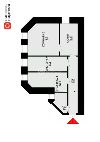 Жилая площадь 66,3 кв.м. (высота потолков - 2,78 м).