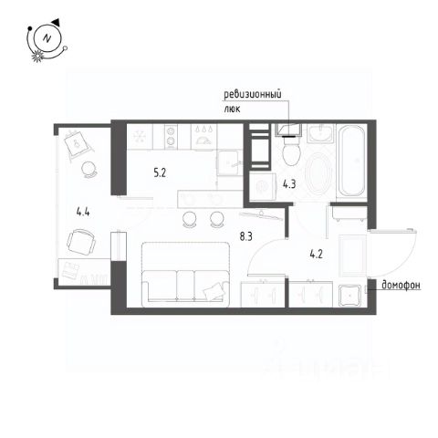 Продается квартира 202, по адресу г. Санкт-Петербург, поселок Шушары, Чудовская улица, дом 14, корпус 1, строение 1, корпус ЖК Монография в Монография на 2 этаже, с площадью 24.1 м2.