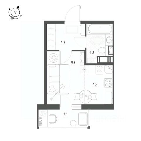 342026 Продается уютная студия-квартира в современном жилом комплексе ЖК Монография площадью 25,1 м2.