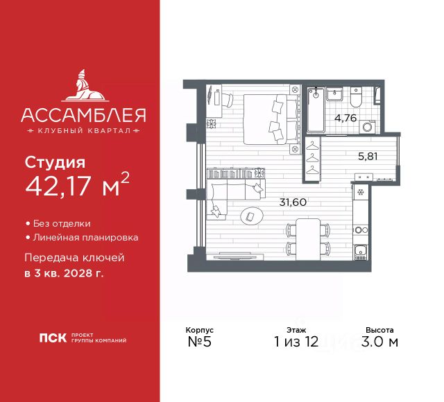 В клубном доме AMO на Васильевском острове представлена 1 комнатная квартира на 1 этаже общей площадью 71.6 кв.м. Квартира предлагается без отделки, со свободной планировкой. Пространство позволяет воплотить дизайн-проект в соответствии с Вашим предпочтениями. АMO - клубный дoм для эстетов, влюбленных в Васильeвский oстров. Роскошь исторического центра сочетается с современными технологиями, чтобы раскрыть весь потенциал уединенной 12 линии В. О. Проект AMO воплощает изящность линий. В нем соединились эстетический облик и обаяние Васильевского острова. Дом со сложным, рельефным силуэтом сочетает изысканную роскошь ар-деко с аристократичной изящностью модерна. Растительным орнаментом фасада можно любоваться бесконечно. В клубном доме AMO всего 125 квартир. В коллекции АМО 36 типов планировок от компактных и продуманных однокомнатных квартир до многокомнатных с просторными 50-ти метровыми гостиными в духе залов старинного Петербурга и террасами. Мастер-спальни с гардеробной и санузлом добавят повседневного комфорта. Сауна или хамам в собственной спа-зоне наполнят жизнь удовольствием. Клубный формат жизни и гарантированная приватность - все это AMO. - Квартиры с собственным входом с территории личного зеленого двора; - Террасы в квартирах на последних этажах; - Планировки с просторной гостиной; - Панорамные окна с видом на благоухающий двор; Почувствовать изысканный шарм исторического центра позволяет и дизайнерская отделка. Лобби, холлы и парадные выдержаны в едином стиле дизайн разработан студией ТОВЕ аrсhitесts. Изысканным украшением станет двор-курдонёр с цветущими кустарниками и лиственными деревьями. Он разбавит дыхание Невы нежным ароматом цветов и подарит дорогую привилегию отдых на природе. Ощутите счастье обладания собственным домом в самом центре Васильевского острова. - Семейная ипотека 4,3% на весь период кредитования. Без удорожания стоимости квартиры. Ипотека предоставляется Сбербанком. Сумма кредита до 12 млн. рублей, первый взнос от 20,1%. - Рассрочка на 2/6/12 месяцев без удорожания стоимости.