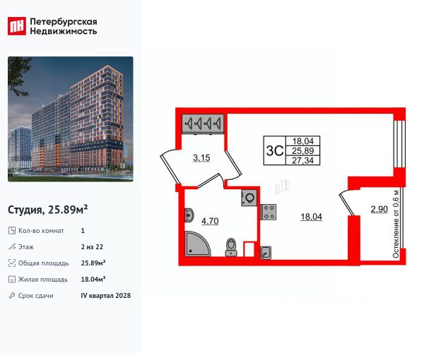 Продаётся квартира - студия от застройщика.