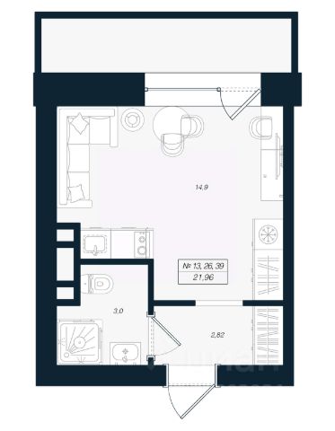 Продаётся студия в строящемся доме (Феникс), срок сдачи: I-кв. 2027, общей площадью 25.82 кв.м., на 3 этаже.