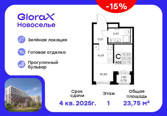 Продажа новой студии с отделкой от застройщика в ЖК "Загляденье" (микрорайон Новоселье, Ломоносовский район) Квартира площадью 22,77 м² с качественной чистовой отделкой "под ключ". Вам останется только завезти мебель и заселиться! Срок сдачи - IV квартал 2027 года. Доступна ипотека, рассрочка и индивидуальные условия оплаты. Преимущества локации: ЖК "Загляденье" расположен в живописном микрорайоне Новоселье на границе с Шунгеровским заказником - прекрасные виды и экология обеспечены. Район отличается удобной транспортной доступностью: • До центра Петербурга по ЗСД - 30 минут • До аэропорта Пулково - 20 минут • Ближайшие станции метро "Ветеранов" и "Автово" • ЖД станция "Сергиево" в 10 минутах езды (28 минут до центра) В шаговой доступности вся необходимая инфраструктура: поликлиника, ледовая арена, фитнес-клубы, школы, детские сады, магазины и кафе. Близость к историческим местам - Петергофу, Пушкину, Павловску. О жилом комплексе: Современные кирпично-монолитные дома с продуманными планировками. Закрытая охраняемая территория, подземный паркинг. Идеальный вариант для комфортного проживания в экологичном районе с развитой инфраструктурой! Звоните для просмотра и консультации.