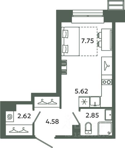 Однокомнатная квартира-студия от застройщика с предчистовой отделкой в ЖК "Брусника в Новоселье" на 1 этаже. Общая площадь: 30.76 кв.м., площадь гостиной 21.4 кв.м., из которых 5 кв.м. выделено под кухонную зону. Все окна выходят на одну сторону. В квартире один совмещенный санузел. Высота потолков 2.7 м.
