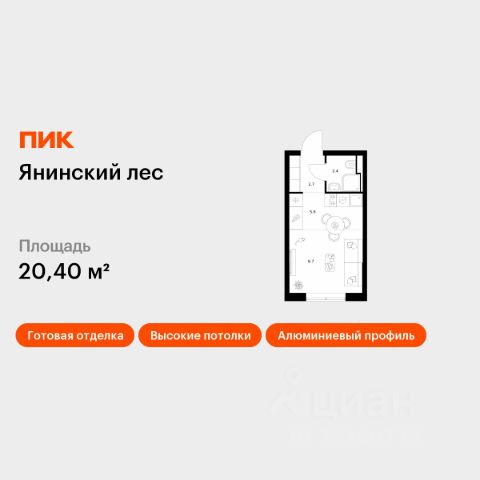 Продаётся квартира-студия площадью 20,4 кв.м на 1 этаже 15 этажного дома (Корпус 4, Секция 1) проекта ПИК Янинский лес. Светлый просторный подъезд на уровне земли, функциональная планировка, большие окна, c отделкой. Жилой квартал "Янинский лес" возводится в районе Янино-1 Ленинградской области. Автобусная остановка находится в 3 минутах пешком. Проект расположен вплотную к восточной границе Санкт-Петербурга - в 4 минутах от КАД. До метро "Ладожская" - 23 минуты на общественном транспорте. До исторического центра города можно доехать за 25 минут на автомобиле. "Янинский лес" - масштабный проект из 32 жилых корпусов, где будет всё для комфортной жизни. Здесь предусмотрены надземные паркинги, откроются детские сады, школа и поликлиника. Кроме этого, появятся места, в которых можно проводить свободное время: ледовая арена и торговый центр площадью больше 3000 м². Жилой район строится по всем правилам ПИК-Стандарта: в зелёных дворах-парках появятся современные детские и спортивные площадки, пешеходный бульвар и другие места для отдыха. На первых этажах разместятся магазины, кафе и другие сервисы. Во дворах не будет автомобилей, а для гостей предусмотрены парковочные места. Проект окружают лесные массивы. В пешей доступности находится Ржевский лесопарк: летом там можно гулять и собирать грибы, а зимой кататься на лыжах. Также рядом расположен памятник природы Колтушские высоты - парк с обустроенными экотропами и веломаршрутом. А главное место притяжения местных жителей - озеро с обустроенным местом для пикников. Артикул 1049653 (Застройщик ООО "СПЕЦИАЛИЗИРОВАННЫЙ ЗАСТРОЙЩИК"ЭКСТРАГРАД") [cn_sbp_1828184]