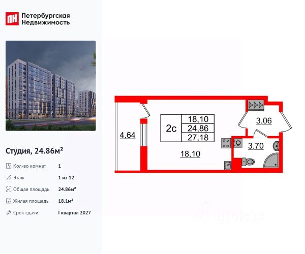 Продается квартира-студия на 1-м этаже в проекте комфорт-класса Парголово. Общая площадь лота составляет 31,37 кв. м, из которых 23,20 кв. м отведено под жилую и кв. м под кухонную зону. Номер квартиры - 4. Преимущества: - Квартира комфорт-класса - Зеленый район, Шуваловский парк в 20 мин. пешком - 10 мин. до КАД, 15 мин. до ЗСД - 5 эт. паркинг на 451 м/м - Закрытые дворы с видеонаблюдением - Детские площадки с геопласткой и бизиборадми - Сады и школы в шаговой доступности - Спортивные площадки и велодорожки - Собственный комьюнити-центр - Келлеры для хранения - Коммерческие помещения на 1 этажах Парголово — масштабный проект комфорт-класса в Выборгском районе Санкт-Петербурга девелопера GloraX. Место, продуманное до мелочей, где все, что необходимо — рядом. Архитектурно-пространственное решение отличается лаконичностью и строгостью и придает проекту свой характер. Внутренние дворы закрыты от внешнего мира, создавая приватную территорию для жителей. Живите на природе, но с комфортом мегаполиса. Десять минут на велосипеде или полчаса пешком — и вы окажетесь в одном из культовых мест отдыха петербуржцев: Шуваловском парке, Орловском заказнике с их чистыми карьерами или на Суздальских озерах. До ж/д станции "Парголово" 7 минут на автомобиле, до метро Проспект Просвещения 25 минут, КАД 10 минут, ЗСД 15 минут. В шаговой доступности остановка общественного транспорта. В шаговой доступности — собственные школы и детские сады. Здесь все создано для максимального комфорта каждого жителя. Приватное пространство внутреннего двора с беседками с розетками для работы и отдыха, зеленый двор с уютным многоуровневым освещением, детскими эко-площадками и спортивными площадками создает неповторимую атмосферу, заряжающую энергией на новые свершения. Квартиры сдаются без отделки. Узнайте подробности в Отделе продаж.