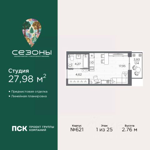 Продается квартира-студия на 1-м этаже в проекте комфорт-класса Парголово. Общая площадь лота составляет 31,37 кв. м, из которых 23,20 кв. м отведено под жилую и кв. м под кухонную зону. Номер квартиры - 4. Преимущества: - Квартира комфорт-класса - Зеленый район, Шуваловский парк в 20 мин. пешком - 10 мин. до КАД, 15 мин. до ЗСД - 5 эт. паркинг на 451 м/м - Закрытые дворы с видеонаблюдением - Детские площадки с геопласткой и бизиборадми - Сады и школы в шаговой доступности - Спортивные площадки и велодорожки - Собственный комьюнити-центр - Келлеры для хранения - Коммерческие помещения на 1 этажах Парголово — масштабный проект комфорт-класса в Выборгском районе Санкт-Петербурга девелопера GloraX. Место, продуманное до мелочей, где все, что необходимо — рядом. Архитектурно-пространственное решение отличается лаконичностью и строгостью и придает проекту свой характер. Внутренние дворы закрыты от внешнего мира, создавая приватную территорию для жителей. Живите на природе, но с комфортом мегаполиса. Десять минут на велосипеде или полчаса пешком — и вы окажетесь в одном из культовых мест отдыха петербуржцев: Шуваловском парке, Орловском заказнике с их чистыми карьерами или на Суздальских озерах. До ж/д станции "Парголово" 7 минут на автомобиле, до метро Проспект Просвещения 25 минут, КАД 10 минут, ЗСД 15 минут. В шаговой доступности остановка общественного транспорта. В шаговой доступности — собственные школы и детские сады. Здесь все создано для максимального комфорта каждого жителя. Приватное пространство внутреннего двора с беседками с розетками для работы и отдыха, зеленый двор с уютным многоуровневым освещением, детскими эко-площадками и спортивными площадками создает неповторимую атмосферу, заряжающую энергией на новые свершения. Квартиры сдаются без отделки. Узнайте подробности в Отделе продаж.