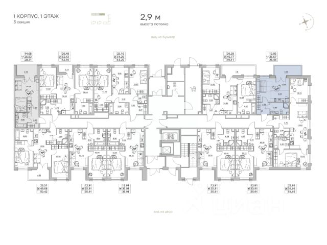 Высокий первый этаж, пол лоджии начинается на уровне 170 см от земли.