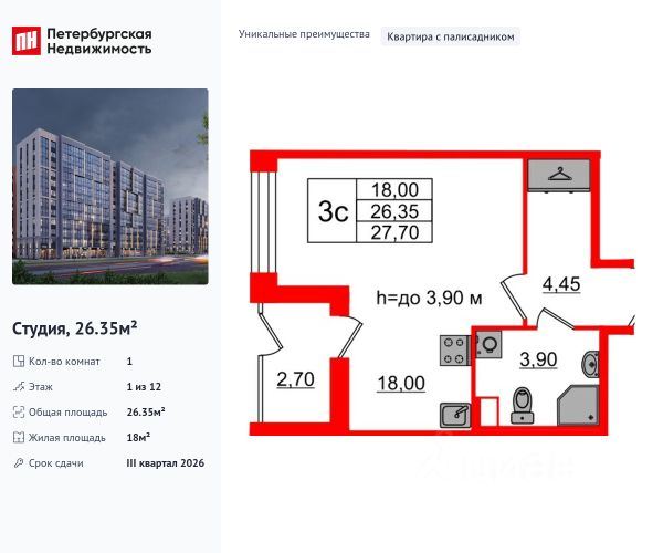 "Продается квартира площадью 35.76 кв. м с предчистовой отделкой. Квартира расположена на 1 этаже 8 этажного дома, в жилом комплексе комфорт-класса "Финский Квартал". "Финский квартал" - это уникальный проект комфорт-класса для тех, кто хотел бы жить на природе, но при этом находиться вблизи Северной столицы. Расположенный в окружении одного из самых крупных парков Ленобласти - Лахтинского, проект предлагает своим жителям доступную инфраструктуру, комплексное благоустройство территории, 6 секций переменной этажности с современной архитектурой, которая гармонично дополнит район и будет радовать проживающих еще много лет. Найдите свою идеальную квартиру в ЖК "Финский Квартал"! Расположение Пешком: - 5 мин. до детского сада и супермаркета; - 8 мин. до остановки "Зеленая улица"; - 10 мин. до лесопарковой зоны. На автомобиле: - 3 мин. до Приозерского шоссе; - 10 мин. до Выборгского шоссе; - 12 мин. до КАД; - 30 мин. до ст. метро "Проспект Просвещения". Благоустройство - большой яркий двор с ландшафтным дизайном; - живая изгородь, кустарники и хвойники; - умное зонирование тихих и активных площадок; - сквер для прогулок и отдыха; - изумрудные лужайки для пикников; - дорожки для пешеходов и велосипедистов; - большие игровые площадки; - мягкое покрытие для безопасности детей; - тренажеры, турники и веревочные комплексы; - пространство только для пешеходов - без машин; - наземная парковка за пределами двора; - специальные площадки для выгула питомцев; - светлые дизайнерские холлы; - светопрозрачное остекление и большие окна; - декоративная подсветка парадных; - колясочные помещения для комфорта родителей; - места для хранения велосипедов и самокатов. Окружение - свежий воздух: парк усадьбы "Осиновая Роща", Лахтинский парк, лесопарк "Курортный", Левашовский заказник, Ново-Кавголовский лесопарк; - водные объекты: Сестрорецкий Разлив, пляжи у Тохколодского и Большого озер, залив Сярюнлахти; - инфраструктура: 2 детских сада, школа, кафе, продуктовый супермаркет, больница; - для крупных покупок: ТРЦ "Китай-Город", "Мега-Парнас"", "Гранд Каньон"; - активный отдых: горнолыжные комплексы "Охта-Парк" и "Токсово", конный клуб "Осиновая Роща", ФОК "Норус"."