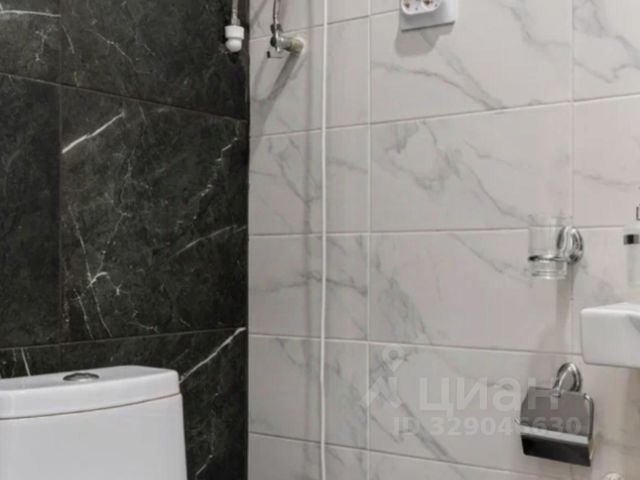 В совмещенном санузле (4,1 квадратных метра) установлена регулируемая система "теплый пол", душевая кабина, унитаз, раковина, полотенцесушитель, есть место для стиральной машинки, сушилки для белья и всевозможных шкафчиков. При желании можно заменить душевую кабину на ванну.