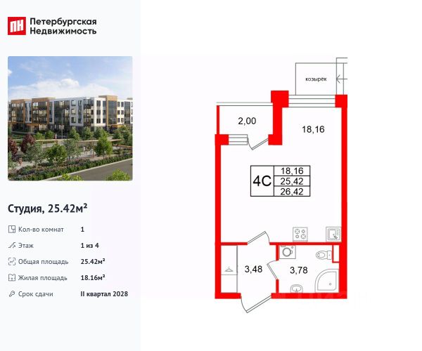 Продажа квартир-студий на 1 этаже в районе Пушкинский в Санкт-Петербурге