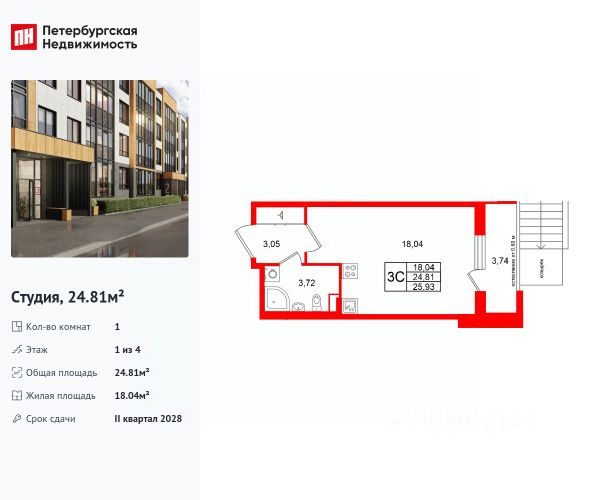 Продается студия в ЖК "Пулково Лейк" на 1 этаже. Общая площадь составляет 23.70 кв. м. Квартира с чистовой отделкой. Жилой комплекс "Пулково Лейк" располагается по адресу Санкт-Петербург, Московский. Пулково Лейк - проект малоэтажной застройки на берегу озера на границе Московского и Пушкинского районов. Дома высотой всего 4 этажа, квартиры от уютных студий до трехкомнатных квартир для большой семьи. Широчайший выбор планировок, включая квартиры с мастер-спальнями, патио, каминами, саунами, двухуровневые квартиры. Школа, детские сады, парк на берегу озера и выезды на Пулковское и Петербургское шоссе. Расположение: • 5 мин на авто до Аэропорта Пулково; • 10 мин на авто до станций метро "Московская; • 10-15 мин на авто до городов Пушкина, Павловска и Гатчины; • 20 мин на авто до центра Санкт-Петербурга. Квартиры в проекте сдаются с предчистовой и чистовой отделкой Соmfоrt Stоnе и Соmfоrt Wооd по современным стандартам - Вы можете сами выбрать отделку, подходящую именно Вам. Дома оборудованы самыми современными инженерными системами и "Умным домом". В рамках проекта будет построена современная школа на 925 мест и 2 детских сада на 160 и 240 мест, выезды на Пулковское и Петербургское шоссе, а также храм рядом со сквером "Пулковский рубеж". Общественное пространство вдоль берега озера превратится во всесезонный парк, в котором найдется место для любых активностей от пробежек, катания на САПах и велосипедах до отдыха в шезлонгах и любования закатом солнца. Зимой будет работать каток, проложен лыжный маршрут, предусмотрено место для новогодней елки и горок для детей. Для Ваших питомцев - площадка для выгула собак. Преимущества: • Высота потолков от 2,6 до 4,5 м; • Уникальные планировки; • Парк на берегу озера; • Система "Умный дом"; • Дворы без машин; • Колясочная в парадной; • Видеонаблюдение в холлах, на первом этаже, в лифтах и в паркингах. Успейте приобрести квартиру на выгодных условиях! Чтобы узнать подробности, обращайтесь за консультацией по телефону.