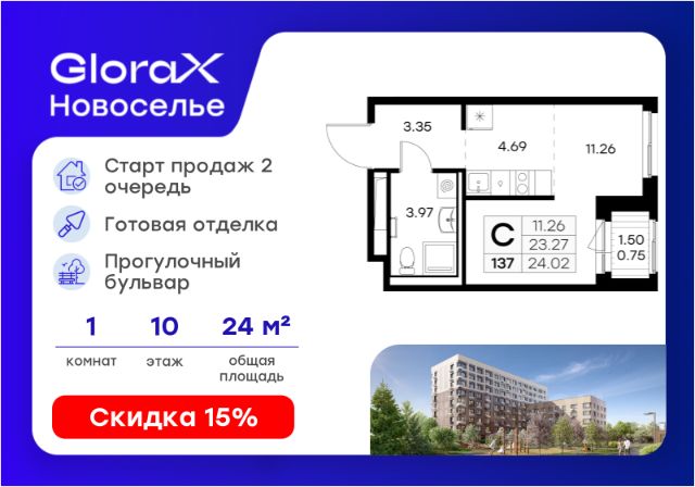 Продаётся квартира-студия площадью 28,62 кв.м на 10 этаже 12 этажного дома (Корпус 4.2, Секция 1) проекта ПИК Таллинский парк. Светлый просторный подъезд на уровне земли, функциональная планировка, большие окна, без отделки. "Таллинский парк" - проект в Ленинградской области, в районе Новоселье. До станции метро "Проспект Ветеранов" - 15 минут на автомобиле, а до КАД можно доехать всего за 4 минуты. "Таллинский парк" включает 16 жилых домов, детский сад и школу. В проекте появится центральный сквер с обильным озеленением, а через весь квартал протянутся широкие пешеходные бульвары. В зелёных дворах-парках будут оборудованы современные детские и спортивные площадки, обустроены места для отдыха. На первых этажах разместятся магазины, кафе и другие сервисы. Проектом предусмотрены персональные кладовые помещения - это доступный, экономичный и удобный способ хранения сезонных и крупногабаритных вещей. Освободите свою квартиру для полноценной жизни. Район Новоселье активно развивается в городском формате: здесь уже работают детские сады, школа и магазины. Для любителей зимних видов спорта открыта круглосуточная ледовая арена Ice Rink. За покупками и развлечениями также можно быстро доехать: 10 минут - и вы в Аутлете Fashion House Таллинское, гипермаркетах Лента, Леруа Мерлен и Окей. В 10 минутах на автомобиле находится Финский залив, на берегу которого расположились объекты культурного наследия. Рядом - Константиновский парк с отреставрированным дворцом, а чуть дальше расположена усадьба Знаменка. В великолепном Петергофе вы будете уже через 20 минут. Артикул 1026468 (Застройщик ООО "СПЕЦИАЛИЗИРОВАННЫЙ ЗА СТРОЙЩИК "СТРОЙ-ЭКСПЕРТ ") [cn_sbp_1817860]