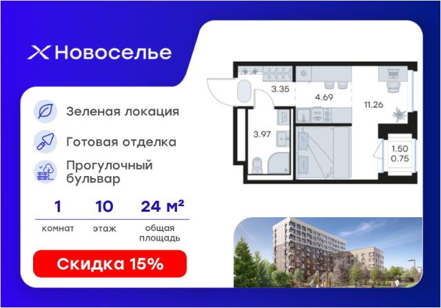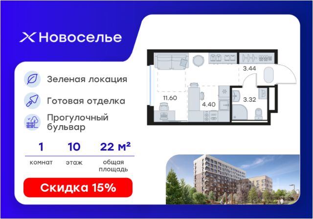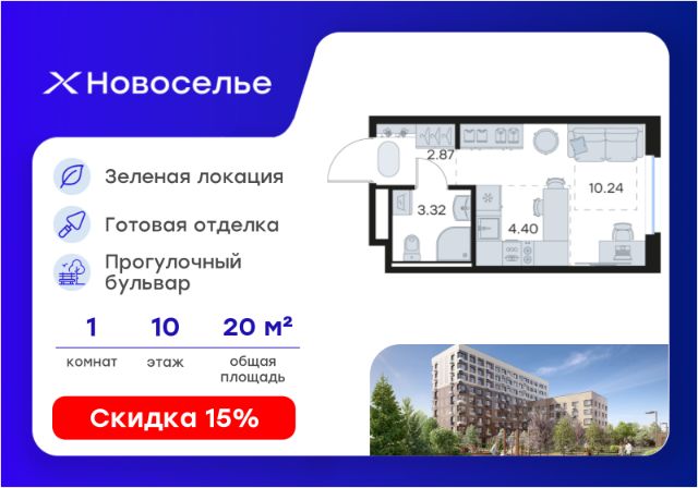 Продаётся квартира-студия площадью 28,89 кв.м на 10 этаже 12 этажного дома (Корпус 4.1, Секция 2) проекта ПИК Таллинский парк. Светлый просторный подъезд на уровне земли, функциональная планировка, большие окна, c отделкой. "Таллинский парк" - проект в Ленинградской области, в районе Новоселье. До станции метро "Проспект Ветеранов" - 15 минут на автомобиле, а до КАД можно доехать всего за 4 минуты. "Таллинский парк" включает 16 жилых домов, детский сад и школу. В проекте появится центральный сквер с обильным озеленением, а через весь квартал протянутся широкие пешеходные бульвары. В зелёных дворах-парках будут оборудованы современные детские и спортивные площадки, обустроены места для отдыха. На первых этажах разместятся магазины, кафе и другие сервисы. Проектом предусмотрены персональные кладовые помещения - это доступный, экономичный и удобный способ хранения сезонных и крупногабаритных вещей. Освободите свою квартиру для полноценной жизни. Район Новоселье активно развивается в городском формате: здесь уже работают детские сады, школа и магазины. Для любителей зимних видов спорта открыта круглосуточная ледовая арена. За покупками и развлечениями также можно быстро доехать: 10 минут - и вы в Аутлете Таллинское, гипермаркетах Лента, Леруа Мерлен и Окей. В 10 минутах на автомобиле находится Финский залив, на берегу которого расположились объекты культурного наследия. Рядом - Константиновский парк с отреставрированным дворцом, а чуть дальше расположена усадьба Знаменка. В великолепном Петергофе вы будете уже через 20 минут. Артикул 1026465 (Застройщик ООО "СПЕЦИАЛИЗИРОВАННЫЙ ЗА СТРОЙЩИК "СТРОЙ-ЭКСПЕРТ ") [cn_sbp_1842914]