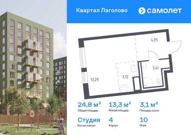 Старт продаж! Студия площадью 23.62 в ЖК "А101 Лаголово" на 10 этаже. Квартира без отделки. Вид из окна на улицу. В квартире 1 санузел. Высота потолков 2.74 м. Предложения от застройщика на ноябрь 2025: - Гибкая рассрочка 20 000 руб/мес. и первым взносом 10%. ОТДЕЛКА Квартира передается без отделки. Благодаря тому, что в данном типе отделки стены не возводятся, вы сможете создать удобную планировку и самостоятельно организовать зонирование комнат. ПАРАДНАЯ. В каждой парадной предусмотрены места для хранения велосипедов и колясок, гостевой санузел и удобная зона ожидания для гостей. ДВОРЫ И ОКРУЖЕНИЕ. Просторные дворы безопасны для детей, так как свободны от машин, закрыты от посторонних и постоянно находятся под видеонаблюдением. Во дворах создается разнообразная среда для детей всех возрастов: детские площадки с батутами, тактильными дорожками и игровыми комплексами. Для активного отдыха - воркаут-площадки, столы для пинг-понга и газоны для занятий йогой. Во дворах есть и тихие уголки - зеленые гостиные с уличной мебелью, где можно поработать на свежем воздухе или отдохнуть в тишине. Из внутренних дворов комплекса можно выйти на пешеходный бульвар длиной около 900 метров. Здесь будет организовано полноценное общественное пространство с амфитеатром, уличным кафе, ручьем, фонтаном и множеством мест для отдыха и игр. Большую часть бульвара займут благоустроенные зеленые зоны и теневые сады из десятков видов деревьев и кустарников, многолетних цветов и трав, которые будут радовать глаз круглый год. "А101 Лаголово" - современный город у подножия знаменитых Дудерговских высот, в объятиях чистейших озер и зеленых живописных массивов, наполненный всем необходимым для счастливой жизни. ИНФРАСТРУКТУРА. Мы занимаемся комплексным освоением территории. Наш приоритет - доступность всех сервисов для счастливой жизни. 1. Лаголово-город 15-ти минутной доступности. Вся необходимая инфраструктура: магазины, салоны красоты, образовательные учреждения, медицинские центры находятся в 15-ти минутах пешей прогулки от любой точки жилого комплекса. Это позволяет не тратить время на долгие перемещения. 2. Представьте идеальный город, где ребенок может спокойно играть, а пожилой человек наслаждаться заслуженным отдыхом. Жилая среда нашего комплекса может комфортно использоваться как 8-летним ребенком, так и 80-летним пожилым человеком. Дома, улицы, общественные пространства, тротуары спроектированы с заботой о людях разных возрастов. 3. Мы активно развиваем авторскую образовательную экосистему "Лёрнити". Она включает строительство 8 современных детских садов (2000 мест) и 3 школ (2945 учащихся). Мы учим родителей гармонично общаться с детьми, помогаем малышам подготовиться к школе, а подросткам - выбрать будущую профессию и развить таланты. Не хватает средств на покупку кладового помещения? Оформите ипотеку на квартиру и добавьте к ней часть стоимости кладовой. ЗАСТРОЙЩИК ГК "А101" - крупный инвестиционно-строительный холдинг, занимает 6-е место по объему стр
