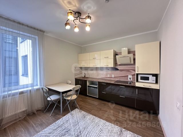 Квартира расположена на 3 этаже. Планировка включает в себя: росторный холл, оборудованную гардеробную, кухню-столовую 12 кв.м ( оборудована немецкой кухонной техникой BOSH), комната 18 кв.м. Высота потолков в помещениях составляет 2.7 метра. Уютную , остекленную лоджию можно использовать, как зону отдыха или зимний сад.