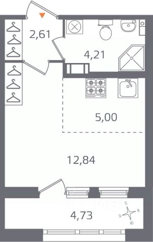 - Санузел раздельный (никаких компромиссов между душем и троном). Потолки 2,7 м — головой не заденешь, даже если вы баскетболист.